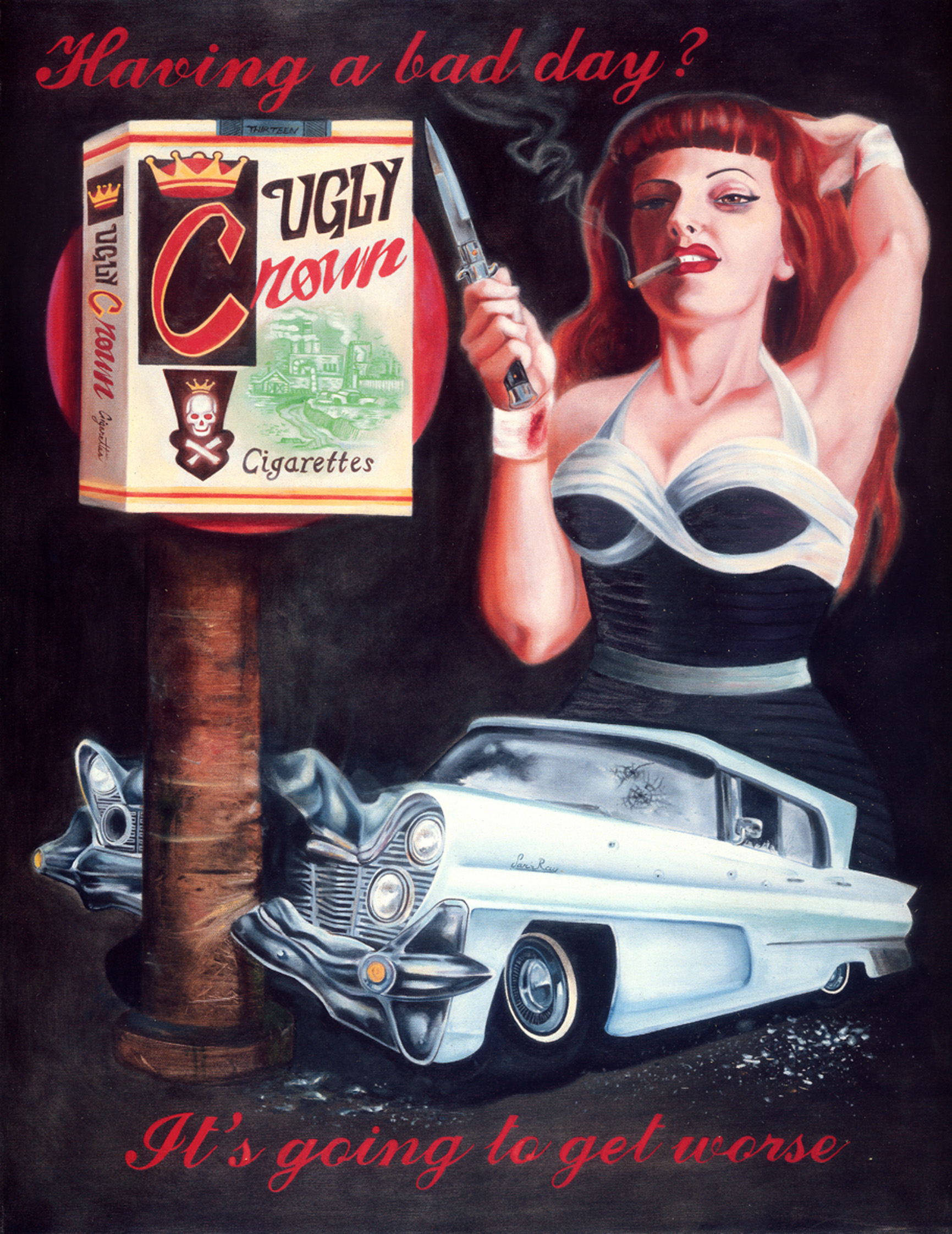 Inseguimenti in auto, ragazze con le pistole e nostalgia noir animano un racconto visivo che si legge come un Exploitation Movie. Damian è stato sempre affascinato dalla cultura balneare di Los Angeles, la vicinanza a una delle più congestionate città del mondo, affacciata sulla costa del Pacifico, fornisce il materiale fertile per affrontare, con la sua cifra stilistica dark, il sogno della California. L’amore per la moto, l’auto, la West Coast, i cartoni animati classici e i mostri si completa in una visione pop-surrealista del tutto personale e originale. Precedentemente all’attività di artista, Fulton ha collaborato con realtà aziendali come Disneyland, Marvel Productions e vari marchi lifestyle.