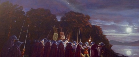 Tutte le bellicose schermitrici di Vanni Cuoghi portano una sottile maschera sul volto, del tipo di quelle usate dai vecchi eroi del fumetto come Lone Ranger o simili a quelle portate dagli 88 Folli, la fittizia gang della yakuza, inventata da Tarantino in Kill Bill. Per l’artista, la maschera è una memoria nostalgica dei carnevaleschi travestimenti infantili, ma anche una metafora della fondamentale ambiguità della pittura, sempre protesa verso la costruzione di una realtà fittizia, immaginifica, misteriosa. Ma se la pittura è una finzione, allora tanto vale epurarla di ogni elemento realistico, di ogni accidente espressivo e dichiarare che la sua funzione è, prima di tutto ideale. Fin dagli esordi, Cuoghi ha scelto di rappresentare i suoi personaggi con gli occhi chiusi, elidendo, così, il più efficace strumento espressivo dell’anatomia umana, traducendo la fisionomia psicologica in una morfologia della maschera. Senza la luce vivificante dello sguardo, infatti, il volto diventa simulacro, icona, sublime e algida effige di dormiente. Così, sognando, le Sibille di Cuoghi inventano un mondo nuovo, rigenerato dalle fondamenta. Esattamente come fa la pittura, quando abbraccia la sua vocazione profetica.