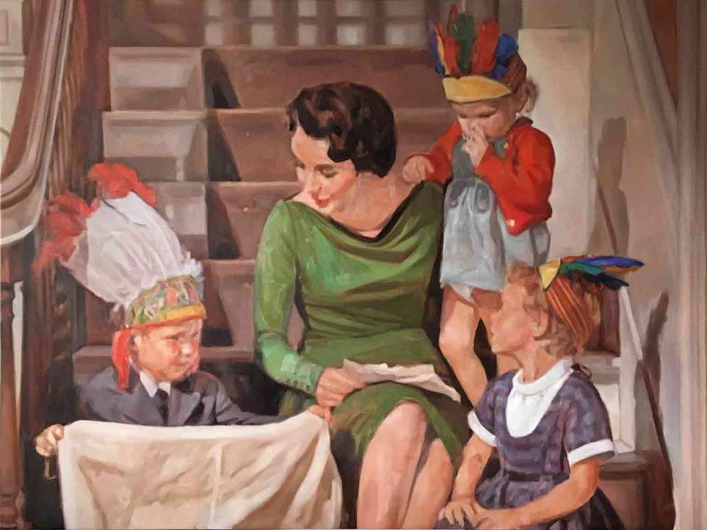 In particolare, l’inclusione dei sottotitoli, rilevabile soprattutto in alcune tele della serie Deadline, ha una duplice funzione: da un lato, rivela immediatamente la fonte mediatica dell’immagine, dall’altra, la risemantizza tramite l’interruzione del tessuto narrativo della pellicola. Così, il cortocircuito prodotto dall’associazione tra il volto di Anissa Jones – la “Buffy” di Family Affair – e il sottotitolo estrapolato dal più ampio contesto di un dialogo, può diventare un’immagine gnomica, che compendia un significato morale (ad esempio, “Her eyes are bigger than her stomach”), oppure può assumere un valore enigmatico (come nel caso di “and a tree with a tree house”). Come afferma l’artista, “è pittura anche la parola scritta, parte integrante di immagini che includono anche il senso di una specie di oracolo”[7] [quasi che il sottotitolo, isolato e sottratto al flusso sequenziale dei dialoghi, acquisisse la medesima qualità enigmatica delle epigrafi del Tempio di Apollo a Delfi].