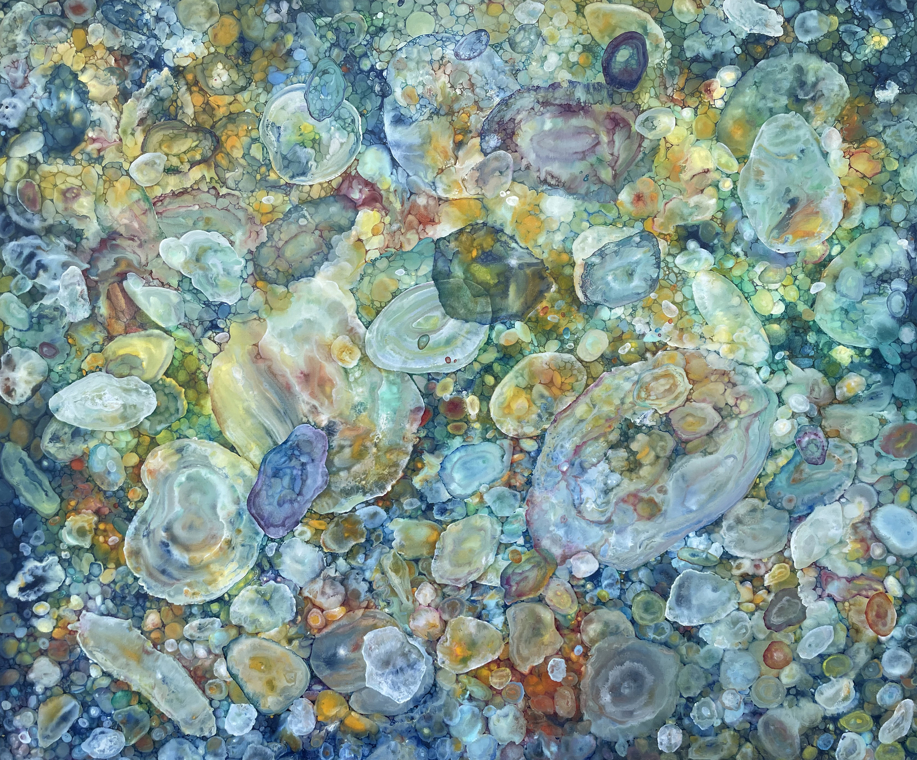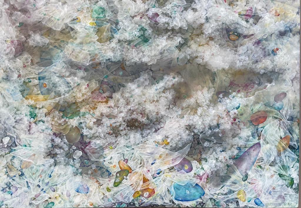 Meduse Fusione mineralica, 2020, encausto cera e pigmenti su juta, 134×134 cm