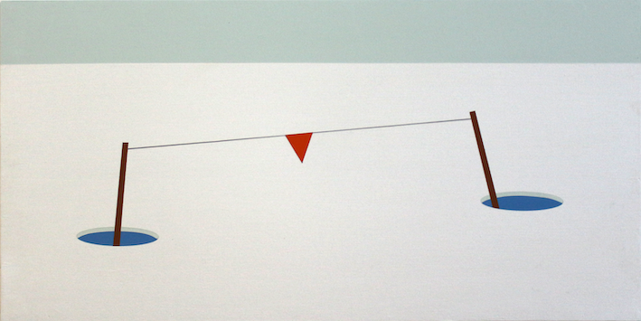 E, così, non solo stanze, piscine, edifici, cabine nautiche, muri, campi da squash e da golf, ma anche laghi ghiacciati, colline, declivi, pendii, forre e banchise diventano immagini paradigmatiche. Segnali che rimarcano la differenza tra la realtà accidentale, vivida, ma imperfetta, e quella, invece, ideale, archetipica, puramente mentale, che l’artista traduce in pittura.