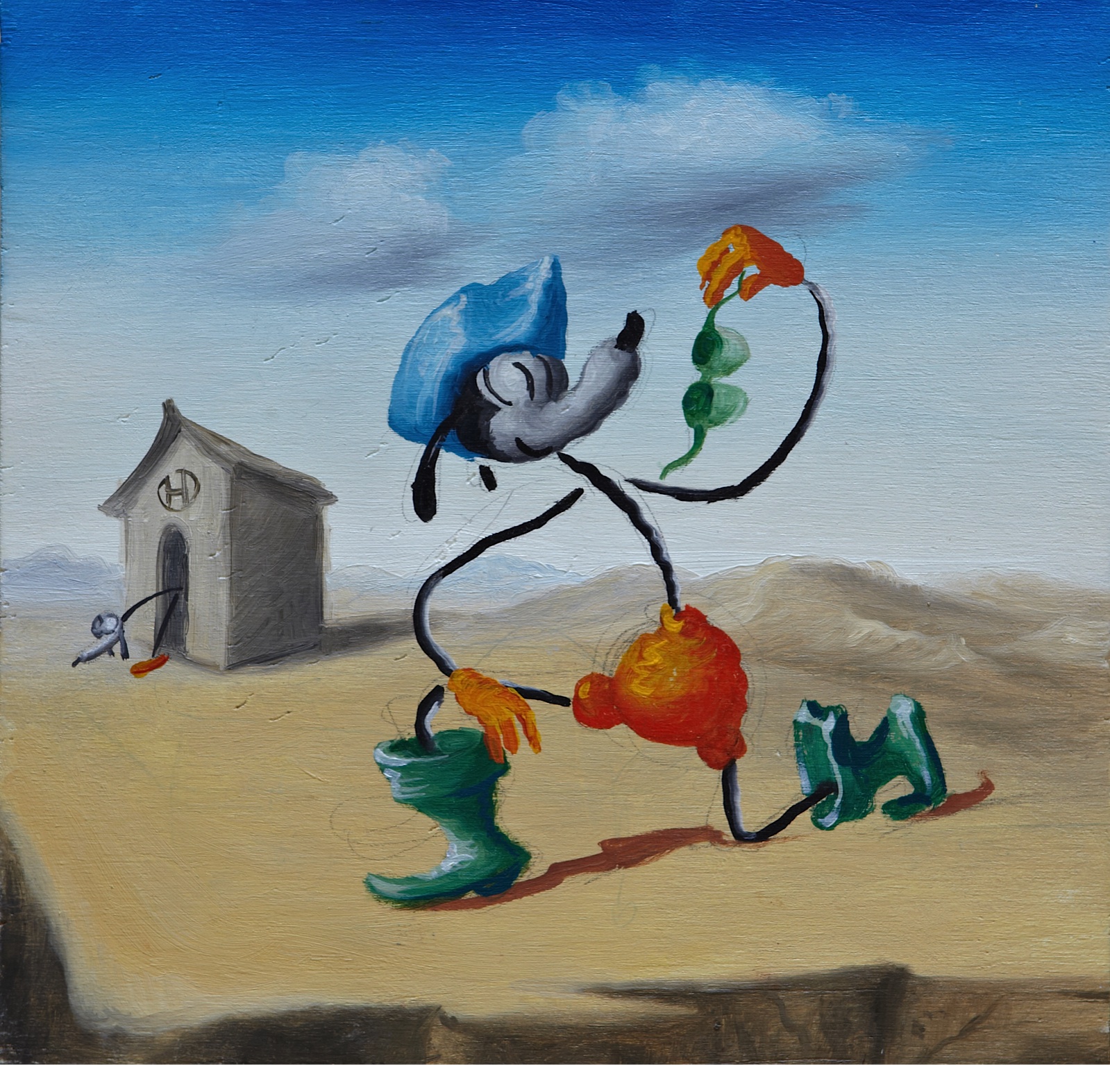 Each painting is a dense magma of figures and images that comply with the random language of legends and the quirky grammar of fables, defying any logical, linear interpretation. The stories painted by Waone do not obey the classic rules of narrative, but neither do they yield to the irrational chaos of a stream of consciousness.