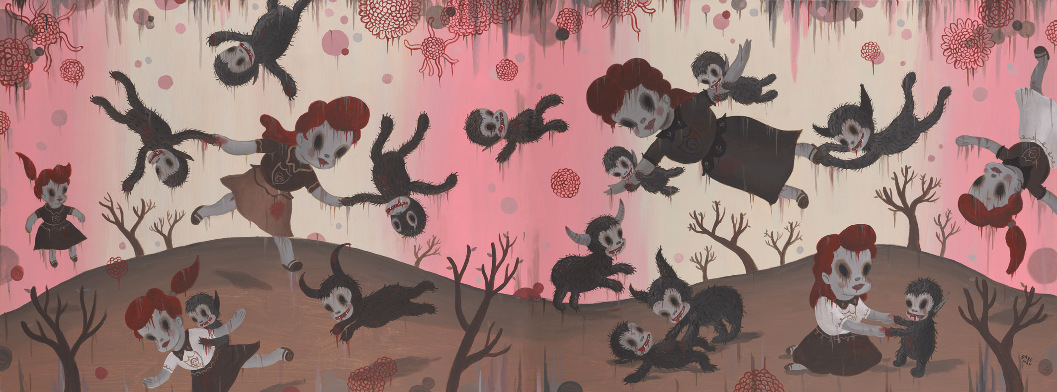 Lowbrow Art e Pop Surrealism sono definizioni, spesso contestate, con cui si designa un vasto e variegato movimento artistico americano formatosi nei primi anni Novanta nell’alveo della cultura underground di Los Angeles. La sua formazione è, però, il risultato di una lunga catena d’influssi, incroci e ibridazioni di differenti subculture, sviluppatesi in California tra la fine della Seconda Guerra Mondiale e l’inizio degli anni Ottanta. Contaminazioni che poi sono confluite in una forma compiuta solo nell’ultimo decennio del Novecento.