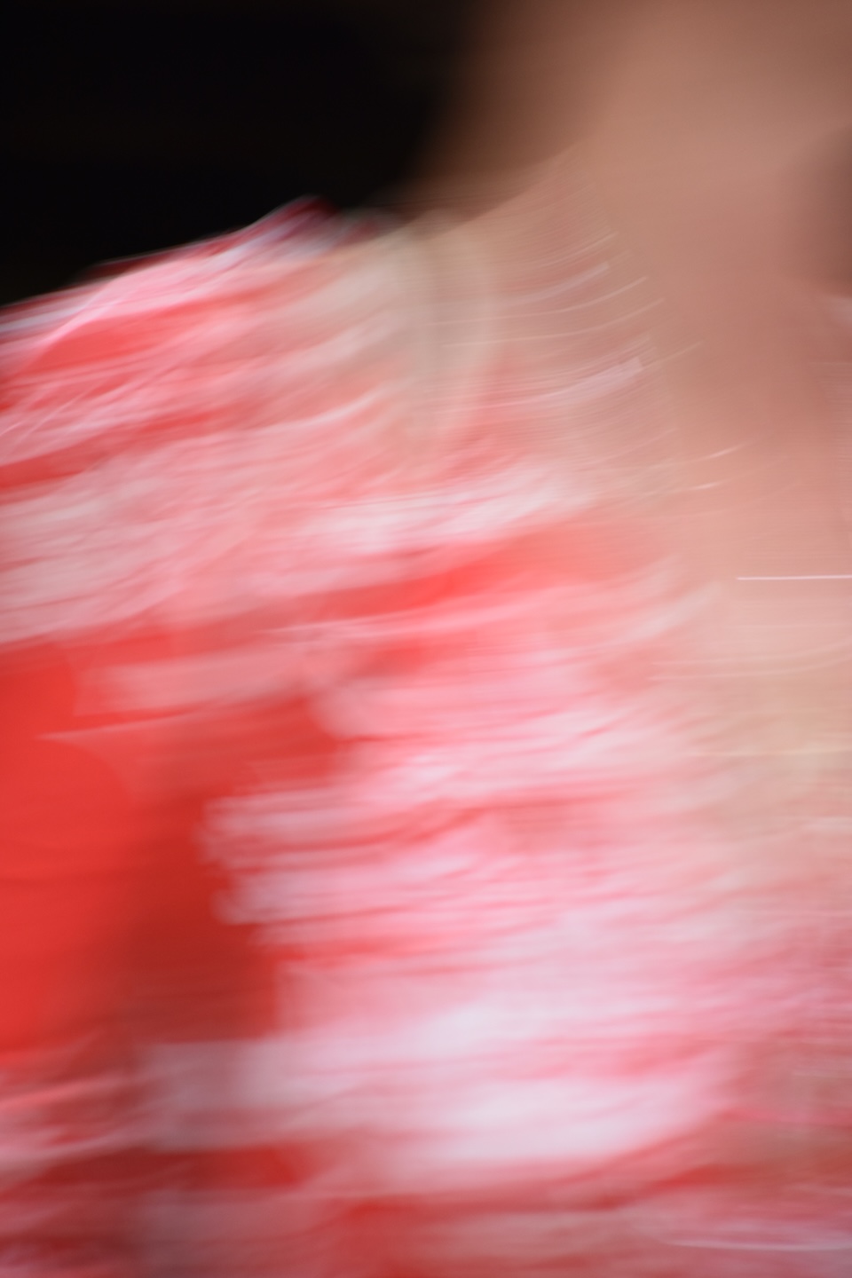 Nel lavoro Purezza/Amore di Gino Montecampi usa la fotografia come strumento di una rappresentazione quasi astratta. Attraverso la sfocatura, il soggetto perde la propria nitidezza per trasformarsi in una sorta di fragile impressione visiva. Così, il corpo femminile si dissolve in un gioco di luci e colori evanescenti, dove il bianco e il rosso simbolizzano rispettivamente la purezza e la passione.