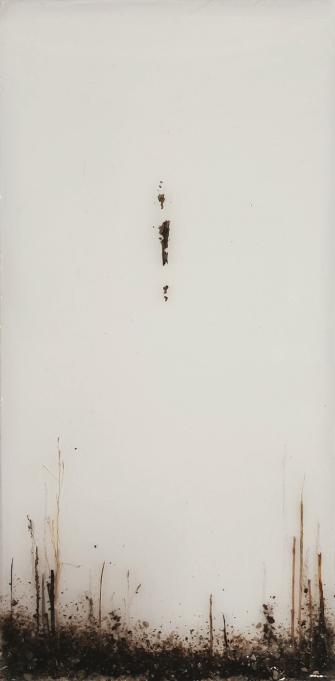 In Cathexis 33, la frase “That which presents itself…”[2] introduce una meditazione sulla percezione. L’immagine che appare come un tutto è soltanto un frammento di un sistema più vasto, inaccessibile perché lo spettatore vi è già immerso. L’opera indica che la conoscenza è un’esperienza parziale, situata dentro un orizzonte che non può essere completamente osservato. Mentre, in Cathexis 34, la frase “To suggest a recognition of limits …”[3] sposta il discorso sulla funzione del limite come strumento di ampliamento semantico. Il riconoscimento di una soglia genera una consapevolezza più ampia, poiché definire un confine equivale a renderlo produttivo.