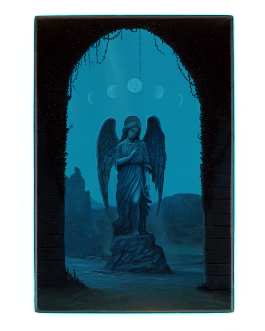 Entrambe le fotografie riprendono la superficie di una cassa realizzata dalla Galleria degli Uffizi di Firenze per il trasporto de Il giudizio di Salomone (1502-05) di Giorgione, con due diversi dettagli marginali ma carichi di significato, perché segnano il punto di contatto tra l’opera storica e la sua sopravvivenza materiale. Kosuth riflette, dunque, sulla trasmissione culturale, sulla memoria visiva e sul sistema di circolazione delle opere, anche attraverso le scritte che, didascalicamente, accompagnano l’immagine fotografica.