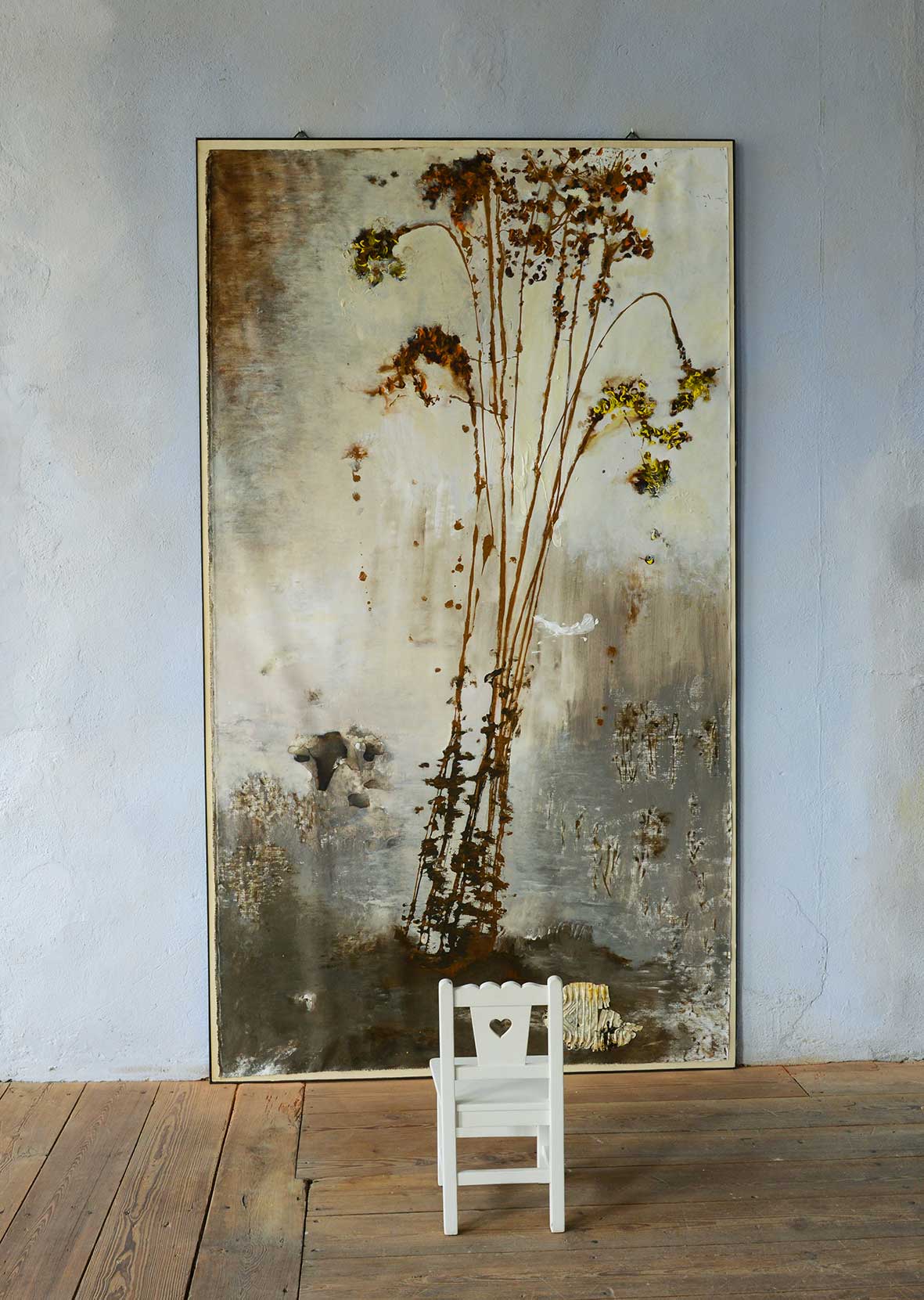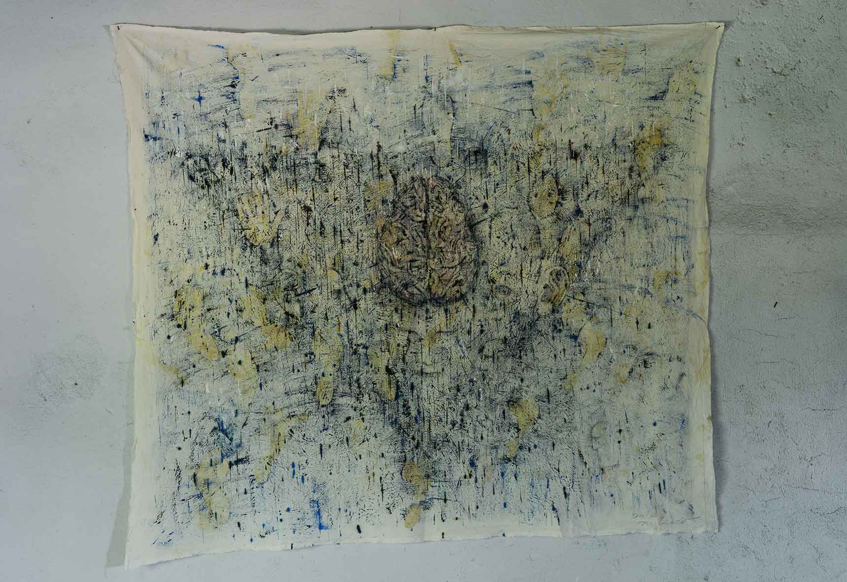 Mentre i poveristi si concentrano sulla dimensione oggettuale, usando materiali scarni ed essenziali, Arcangelo si misura col linguaggio della pittura, gravato da una storia plurisecolare, che egli reinventa prima di tutto sul piano procedurale. La questione per lui non può essere risolta con un semplice ritorno alla pratica artigianale e nemmeno col ricorso a una grammatica di sintesi dei diversi codici della tradizione. Arcangelo tenta di ricostruire il senso stesso della pittura, il valore che essa ha per l’uomo. Valore che, evidentemente, non è riducibile alla mera funzione rappresentativa e tantomeno all’espressione di istanze pulsionali e libidiche, come voleva Achille Bonito Oliva, ma che piuttosto deve identificarsi con la possibilità di rifare il mondo, di ripensarlo ex novo ripartendo dai depositi storici, culturali e spirituali stratificati nella memoria individuale e collettiva.In tal senso, ho definito la pratica della pittura di Arcangelo come un “corpo a corpo” proprio per rimarcare la sua naturale propensione a trovare le ragioni e i motivi del dipingere in una disciplina di scavo interiore (fisico e psicologico), che porta drammaticamente in superficie l’eredità formativa della sua terra d’origine. Il Sannio, una regione storico-geografica coincidente con l’area appenninica compresa tra Abruzzo, Molise, Lucania e Puglia, abitata dal VII secolo a.C. dalle tribù di Pentri, Carracini, Caudini e Irpini, diventa, infatti, l’oggetto di un’ossessiva ricerca sul senso di appartenenza. In Terra mia, il primo ciclo di opere degli anni Ottanta, dominato da atmosfere cupe e drammatiche che recidono ogni legame con gli accesi cromatismi della Transavanguardia, le tracce e le memorie dell’esperienza individuale dell’artista si fondono con quelle della tradizione storica collettiva, formando un amalgama visivo (e proiettivo) del tutto inedito.